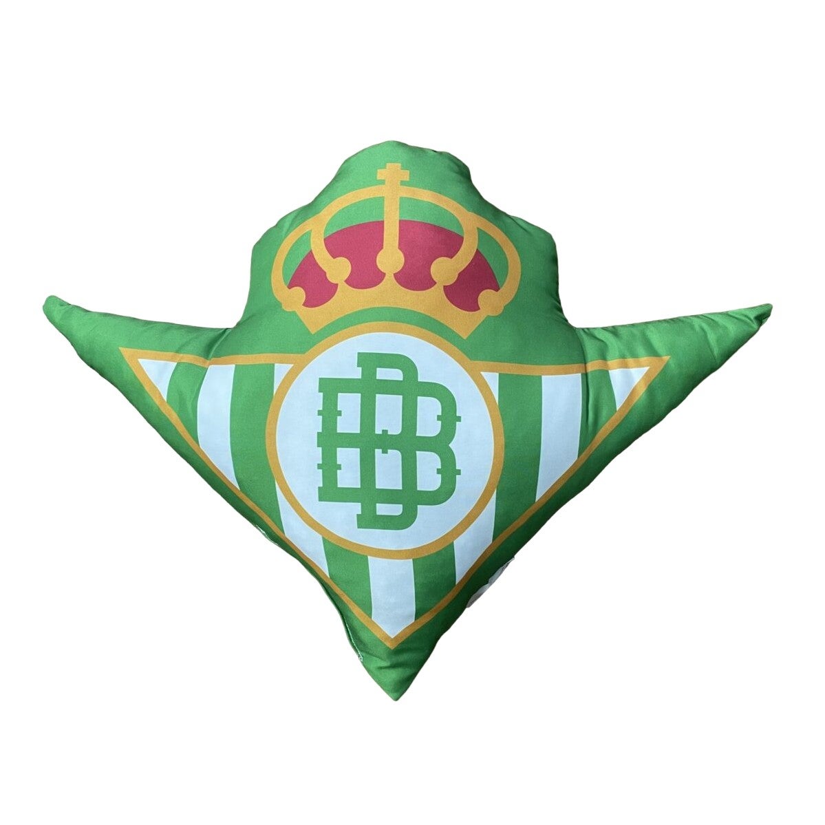 El toque diferencial de la habitación. Un cojín con diseño tridimensional del escudo del Real Betis, suave al tacto y con un acabado premium que lo convierte en el complemento estrella de cualquier cama o sillón.