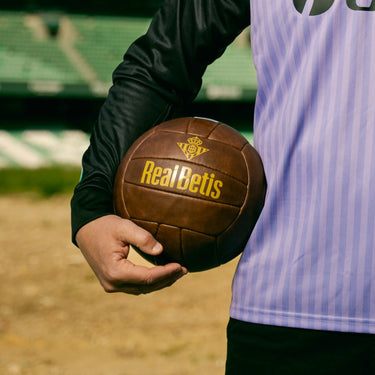 El Balón Clásico Real Betis Balompié recupera la estética de los balones utilizados en los partidos históricos del club, con un diseño en tono marrón y letras doradas que evocan la esencia más auténtica del fútbol tradicional. Una pieza que une nostalgia, elegancia y orgullo verdiblanco en un formato pensado para todas las generaciones.