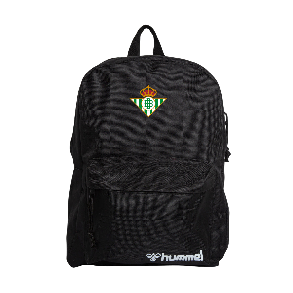Su estética en negro sólido permite que el escudo oficial sea el protagonista absoluto, integrando un bolsillo frontal de fácil acceso, logrando así un distintivo bético equilibrado que funciona tanto en entornos profesionales como en tus momentos de ocio.